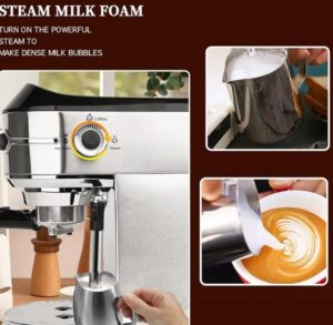 * **Visoka snaga i aroma kafe** – Sa snagom od **1450 W**, aparat brzo propušta vrelu vodu kroz mlevenu kafu, oslobađajući bogat ukus i miris za savršenu šoljicu espresa.