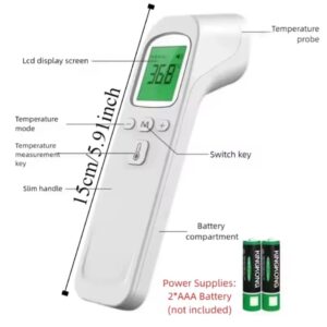 Ovaj **digitalni bezkontaktni toplomer** koristi najnoviju tehnologiju sa **3 ultra osetljiva senzora** i **pametnim čipom** za precizno očitavanje – idealan za bebe, decu i odrasle.