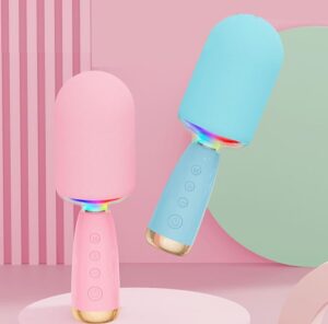 * 🎨 **Neobičan i moderan dizajn** – mikrofon koji izgleda kao sladoled, savršen za poklone i zabave