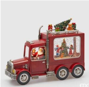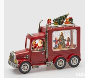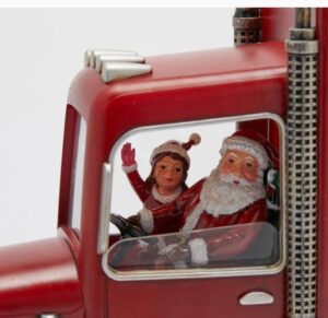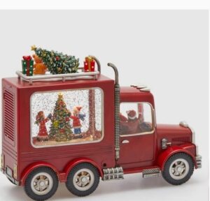 Ovaj kamion izrađen je od visokokvalitetne smole sa ručno oslikanim detaljima koji oživljavaju toplu prazničnu atmosferu. Unutrašnjost je ispunjena tečnošću i šljokicama koje se nežno kovitlaju dok svetlost sija, stvarajući magičan efekat snežne kugle.