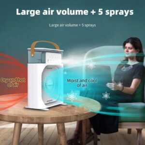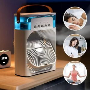 Unesite osveženje u svoj prostor uz ovaj **višenamenski rashlađivač vazduha**! Uređaj kombinuje **ventilator**, **ovlaživač vazduha** i **aroma difuzor**, sa dodatkom **LED noćnog svetla** 🌬💧🌈