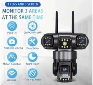 **4 Sočiva 6MP HD WiFi IP PTZ kamera** predstavlja savršen spoj inteligentne tehnologije, vrhunske slike i pouzdane zaštite — idealno rešenje za dom, vikendicu, lokal ili dvorište.