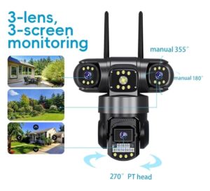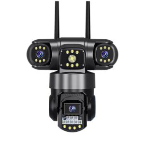 Ova napredna **IP PTZ kamera sa četiri sočiva po 6MP** pruža izuzetnu zaštitu i pokrivenost iz svakog ugla. Zahvaljujući jedinstvenom dizajnu, u aplikaciji možete pratiti **četiri video ekrana istovremeno** – gornja dva sočiva rotiraju se do 180°, srednje je fiksno, dok donje PTZ sočivo omogućava **rotaciju od 355° horizontalno i 90° vertikalno**, čime se obezbeđuje potpuna kontrola prostora.