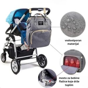 • 2u1 funkcija – torba koja se lako pretvara u prenosivi krevetac za bebu