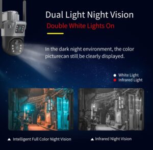 * **Noćni vid u boji + IR LED** – potpuna vidljivost čak i u potpunom mraku (do 30m)