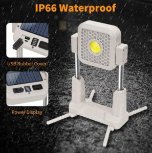 Uz solarno punjenje i impresivnih 10.000 lumena, ova prenosiva radna lampa sa podesivim nosačem je tvoj idealan saputnik za rad, kampovanje ili bilo koju aktivnost na otvorenom.