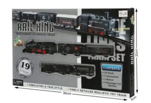 Ova klasična železnička igračka donosi beskrajnu zabavu i maštovitu igru za najmlađe. Set sadrži jednu lokomotivu i **četiri vagona**, pažljivo izrađene kako bi pružili realistično iskustvo vožnje.
